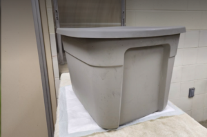 Walker Finds Pregnant Cat Abandoned In Plastic Container Left In The Woods