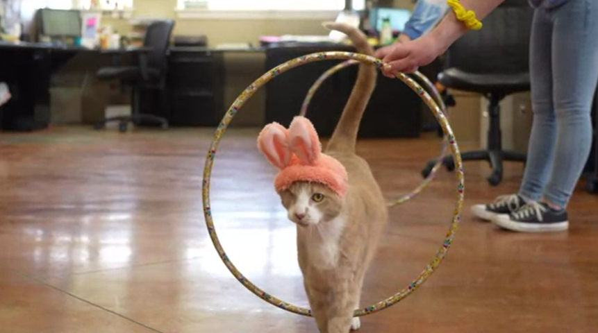 An adorable one-eyed shelter cat has secured the top prize in the Cadbury Bunny Tryout contest. His name is Crash and he calls Boise, Idaho, home. Crash was rescued by Simply Cats after being hit by a car and suffering numerous injuries, including a broken jaw, broken leg, and the loss of his eye. He has since become the shelter’s “resident cat,” entertaining staff and visitors with his adorable antics.