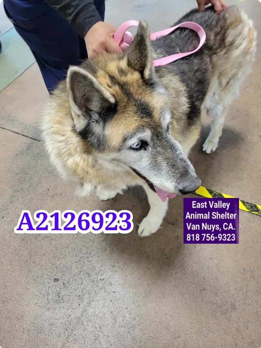 Van Nuys, CA – A beautiful German shepherd named Tasha finds herself in need of a new home after being surrendered to a busy California animal shelter by her family this week. The elderly dog is waiting to be saved at the Los Angeles Animal Services – East Valley Shelter.
