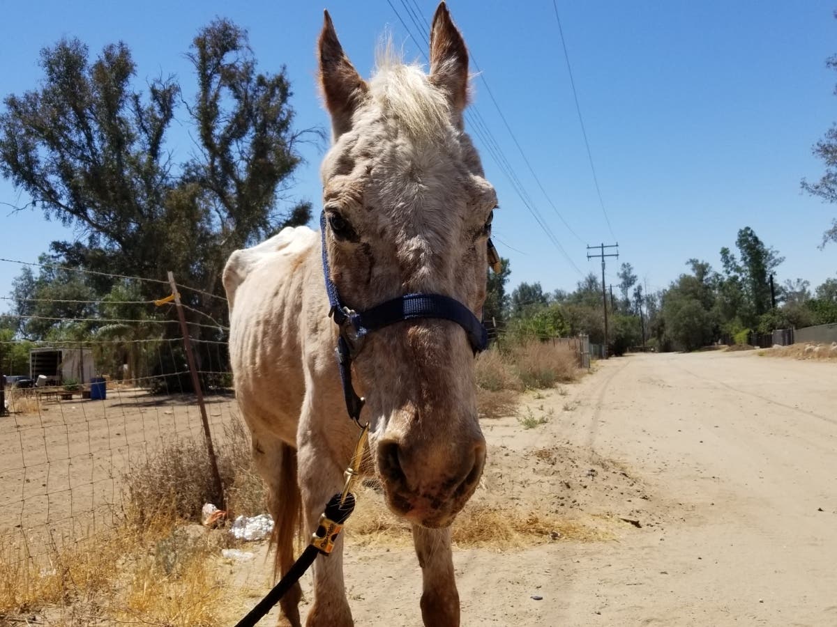 A blind horse, abandoned near Lake Elsinore, in Riverside County, California, is enjoying her second chance at life with the Far-From-Perfect Mustang Rescue group. The 20-year-old horse, dubbed Hope, was found on June 4 – blind and alone on a dirt road. When Hope was found, her condition was dismal. She was malnourished, dehydrated, and injured – in fact, when the rescue group’s veterinarian examined her, they said that she was the worst case they had seen.