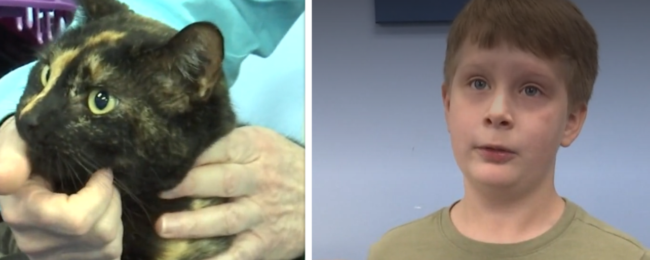 Fortunately, the cat survived the abuse, and thanks to the efforts of Holden and his mom, she was found. After heading out to search the neighborhood, Holden and his mom found the cat in a yard on Sunday and took her to the Pet Helpers shelter on Monday for care. The cat, dubbed Eevee, may have an injured jaw; a veterinarian will examine her to determine the extent of her injuries.