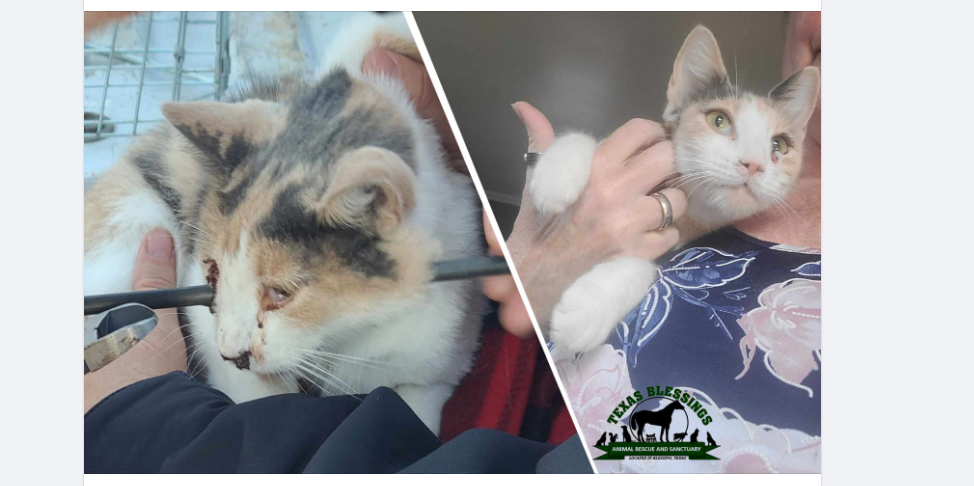 When Susan Dancer, a certified animal cruelty investigator with Texas Blessings Rescue, arrived at the apartment complex, she was told by Animal Control that the cat was going to be euthanized. Instead, the cat was taken to a veterinarian at the Matagorda Vet Clinic to see if she could be saved.