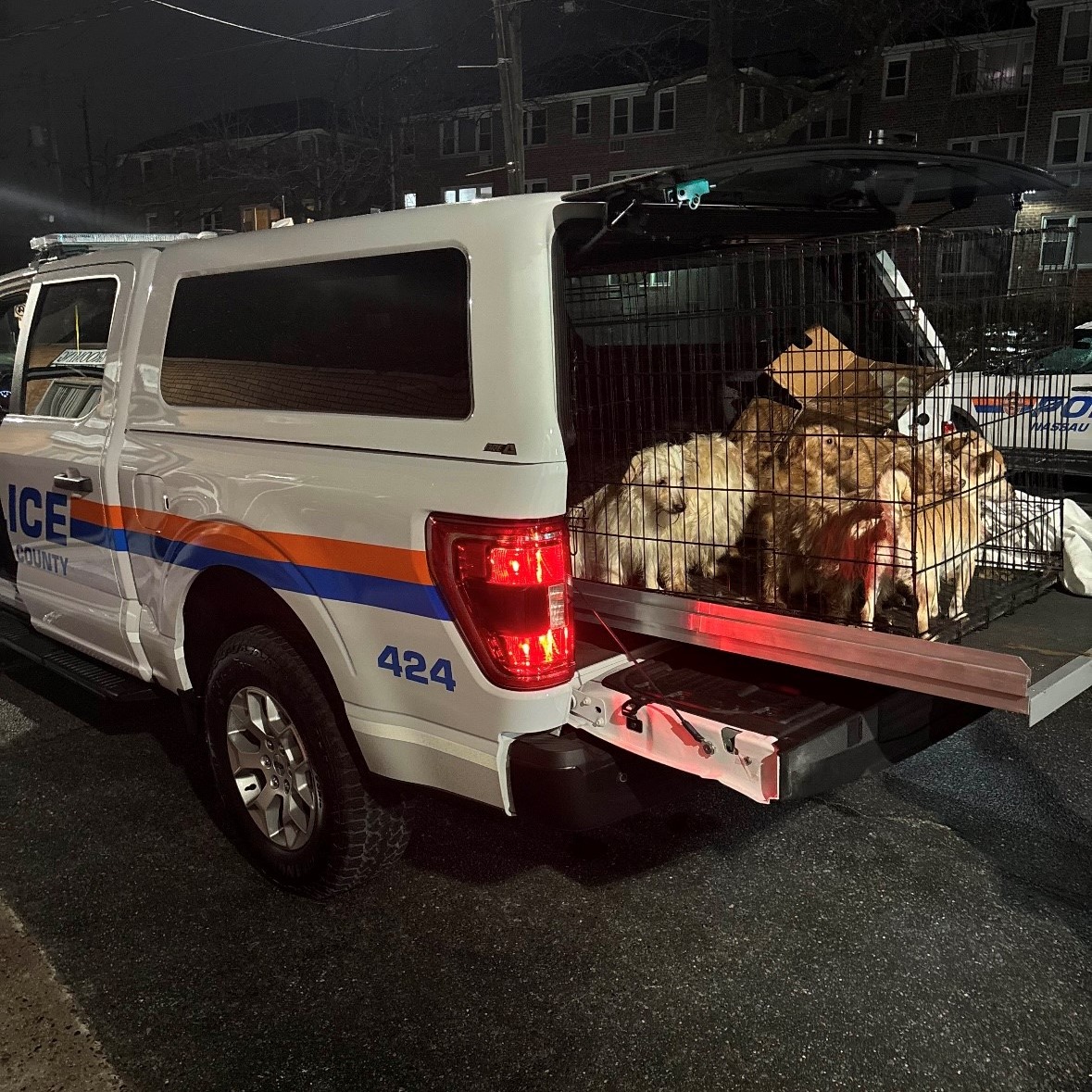 Long Island, NY – On Wednesday evening, someone called the police in Nassau County with a report of dogs barking. Responding officers made a shocking discovery – someone had abandoned more than a dozen caged puppies in an alley.