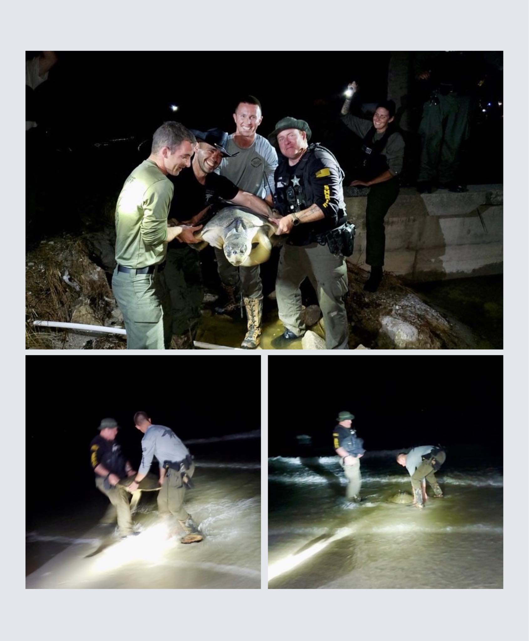 Thanks to the deputies, the turtle is safely back at sea. The Orange County Sheriff’s Office is continuing to patrol the areas impacted by the hurricane to keep everyone (even turtles) safe!