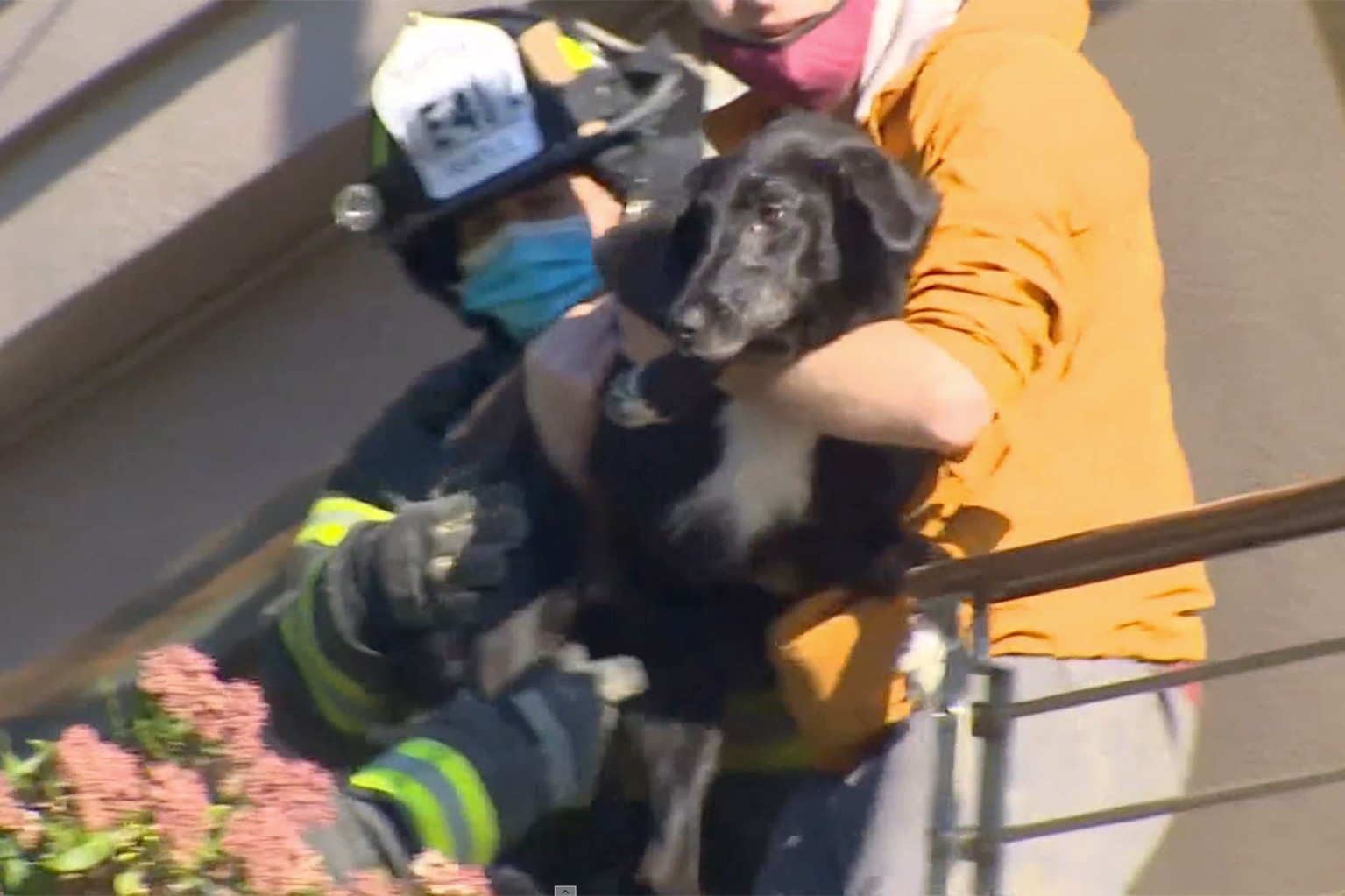 Responding firefighters carefully accessed the interior of the unstable house and after a search, the three-year-old dog was found. Somehow Sammy had managed to survive on her own in the midst of the rubble.