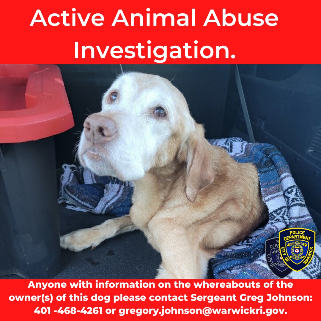 Warwick, RI – The police have instigated an investigation following the discovery of a malnourished, elderly dog at a Warwick cemetery. According to the Warwick Police Department, the senior Labrador retriever was found at Pawtuxet Cemetery.