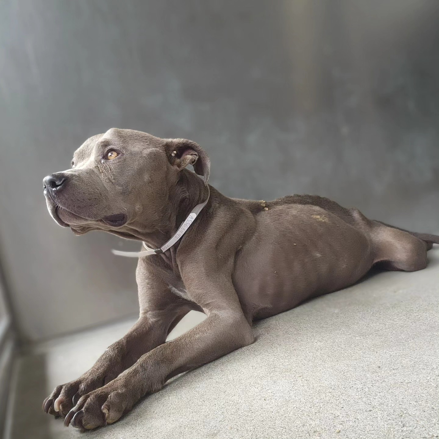 Life has clearly been unkind to this young dog. A dog does not become this malnourished in a loving home. Shelter notes about his personality below: