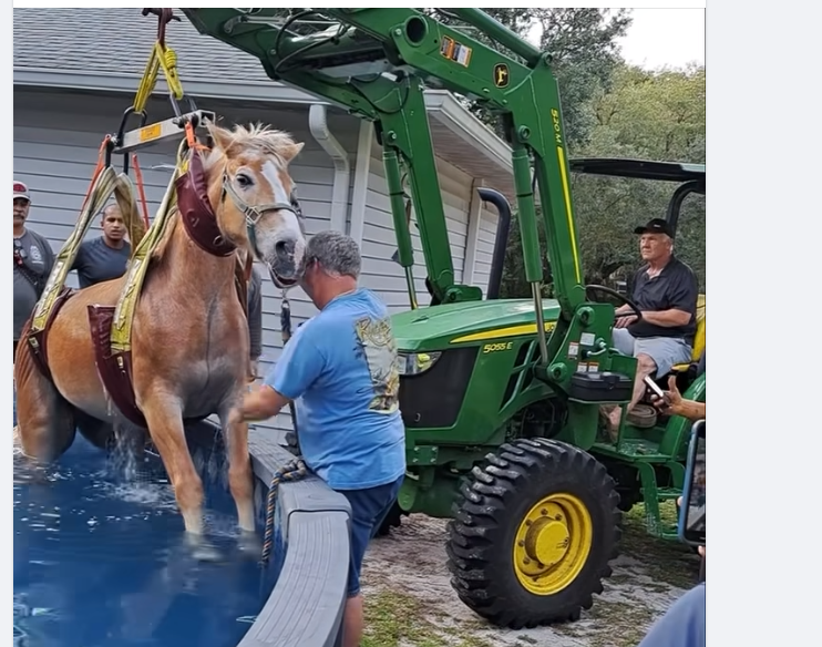 Video was rolling as the horse was successfully pulled out of the pool to safety. According to the fire rescue agency, the horse is in “good condition.” Great work everyone!