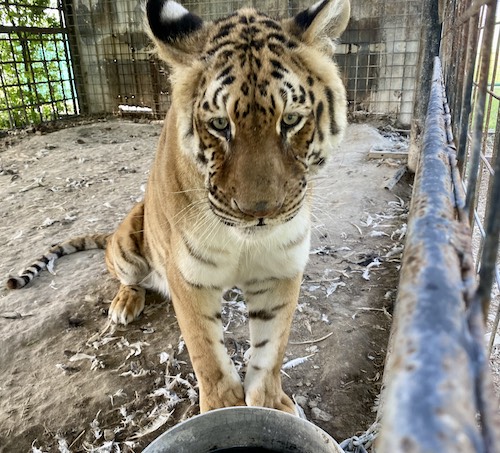 According to a release from the Oakland Zoo, an elderly, arthritic lion that required immediate medical attention, a tiger hybrid in “poor condition,” with a badly infected tooth, and two “lean” tigers, were secured from the abandoned roadside attraction on June 10.