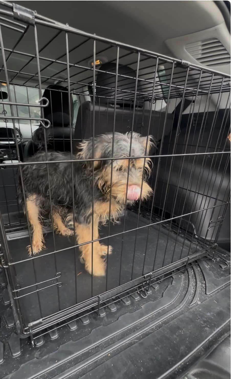 Orange County, FL – Somone abandoned a caged puppy in the path of Hurricane Milton, which is currently closing in on Florida. Thanks to good Samaritans, the puppy’s life was spared.