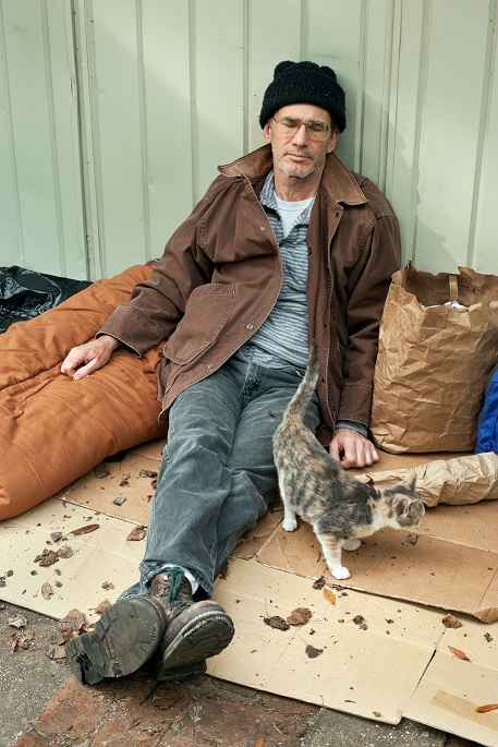 “It may not be the lap of luxury, but the lap of a homeless person is one that’s available 24/7 for their pet. In return, the person without a home gets unconditional love, and on those cold nights on the streets, even shared bodily warmth. In fact, the pet’s love for their owner may be the only true love they have in their life. It can give them purpose, and with that comes a desire to be there to care for their pet. It can even make the difference for a person to choose sobriety over being in an altered state of mind from drugs or alcohol.” Mark Goldstein, DVM.  Doctor Goldstein has also encountered many “street people” using what precious few dollars they have to seek veterinary care for their beloved pets before they would spend it on themselves.