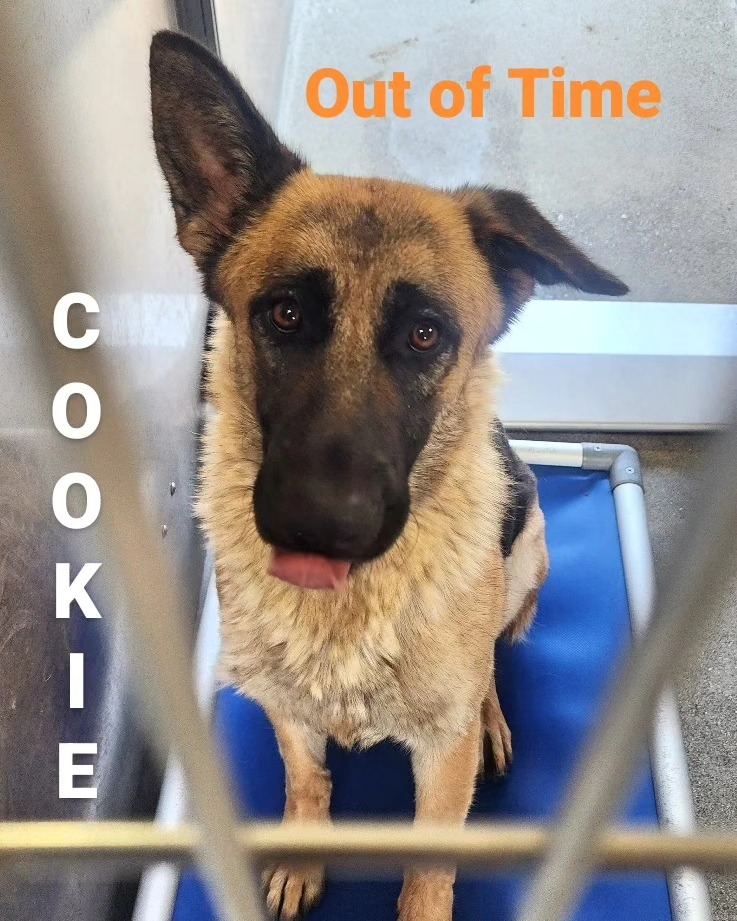 Downey, CA – A beautiful German shepherd named Cookie has run out of time at a crowded California animal shelter. The six-year-old dog has been at the Downey animal control facility since May 12 and nobody has stepped forward to give her a home.