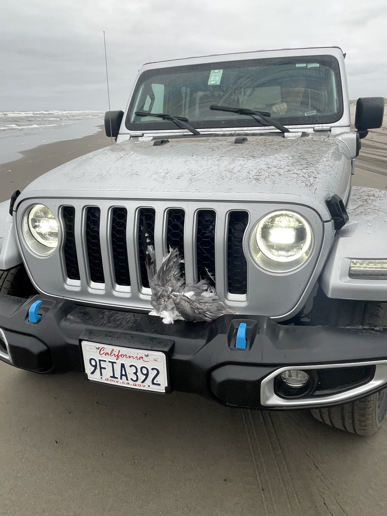 The same Jeep nearly struck two subjects walking their dogs on the beach. Multiple witnesses came forward including three that stopped the vehicle, photographing it and the driver. Efforts to save the few birds remaining alive failed.