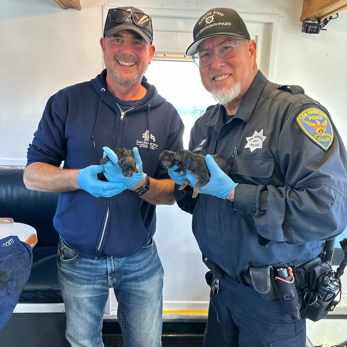 San Francisco, CA – The San Francisco Police Department’s Marine Unit assisted in an unusual delivery Sunday morning. According to the authorities, the Marine Unit helped a German shepherd deliver seven puppies aboard the Kitty Kat, a San Francisco Whale Tours Boat.