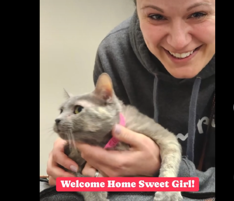 Thanks to an embedded microchip, shelter staff was able to find her owner. The contact number for Feya’s owner, Alexandra, was no longer in service, but an emergency backup for Alexandra’s sister was still active, and it was the key to making a reunion possible.