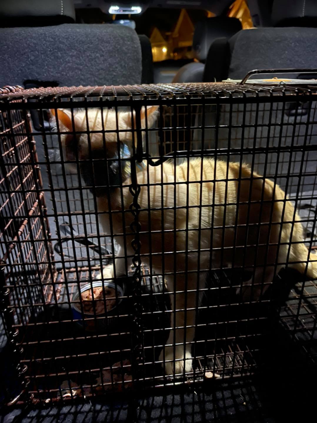 We decided to try the trap again. He kept going only to behind it and trying to fight for the food through the bars with no success. He went to the front and rubbed his head on the trip door and closed it without him in it. ‍♀️ We continued trying by hand, and he continued doing circles. Three hours in, he finally went into the trap and after a very nerve wrecking minute, he tripped it!