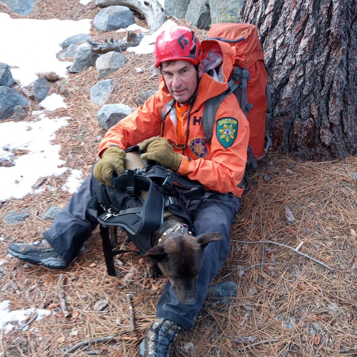 In partnership with El Dorado Animal Control and assistance of a drone from South Lake Tahoe Fire Rescue, Search and Rescue Volunteers responded to the base of the falls. Rescuers were able to locate Moscow who was being attended to by a good Samaritan that was ice climbing.