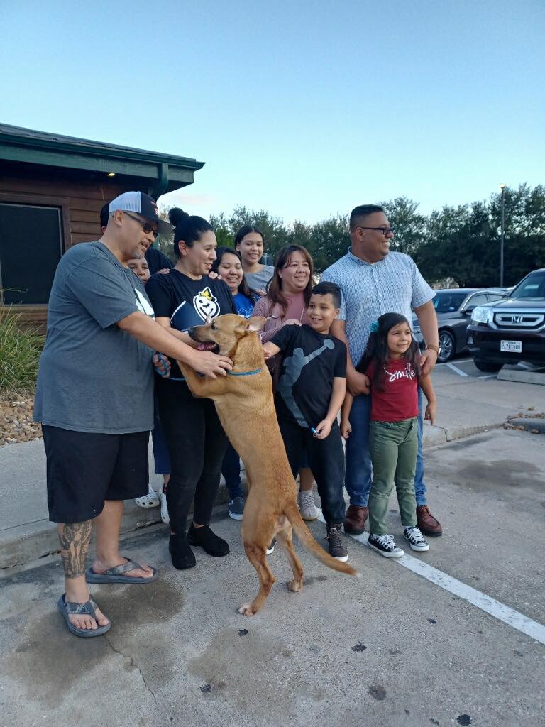 Pasadena, TX – An unlikely reunion took place at an adoption event in Pasadena earlier this month. A dog named Gertie was one of the Pasadena Animal Shelter attendees at the Texas Roadhouse event.