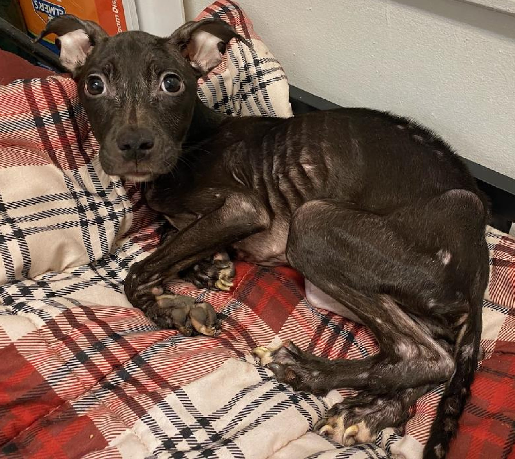 The puppy was rushed to the shelter, where an exam revealed the extent of her injuries and pitiful state of health from being neglected: