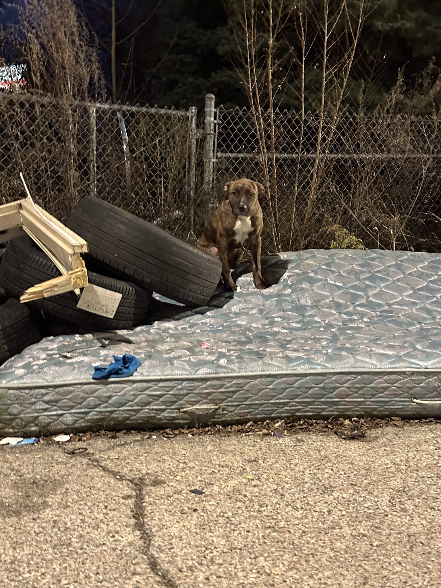 Chicago, IL – A lonesome puppy has a fully tummy, cozy bed, and is safe today thanks to an observant shelter worker who spotted him trying to stay warm on a discarded mattress. According to PAWS Chicago, the staff member spotted “a little face hiding in a pile of garbage in an alley.”