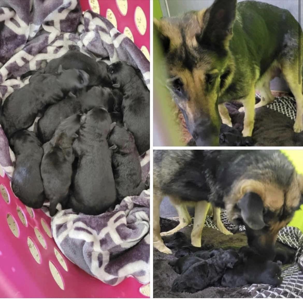 San Jacinto, CA – A beautiful German shepherd gave birth to nine puppies inside the Ramona Humane Society and two of her pups have already died. The homeless family is urgently in need of rescue.