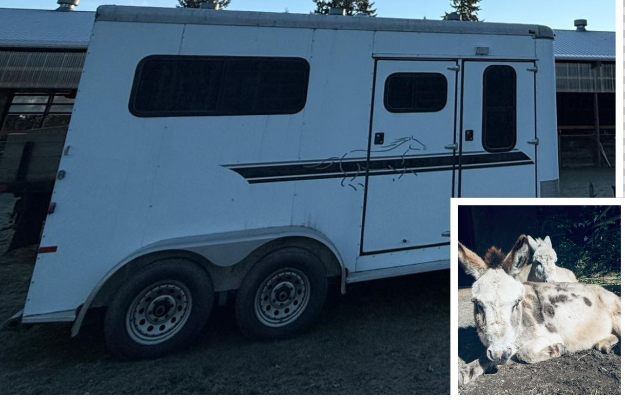 Bellevue, WA – On Sunday, a brazen thief stole a trailer and two mini-donkeys from a private driveway in Bellevue, Washington. The Bellevue Police Department has reached out to the public for assistance.