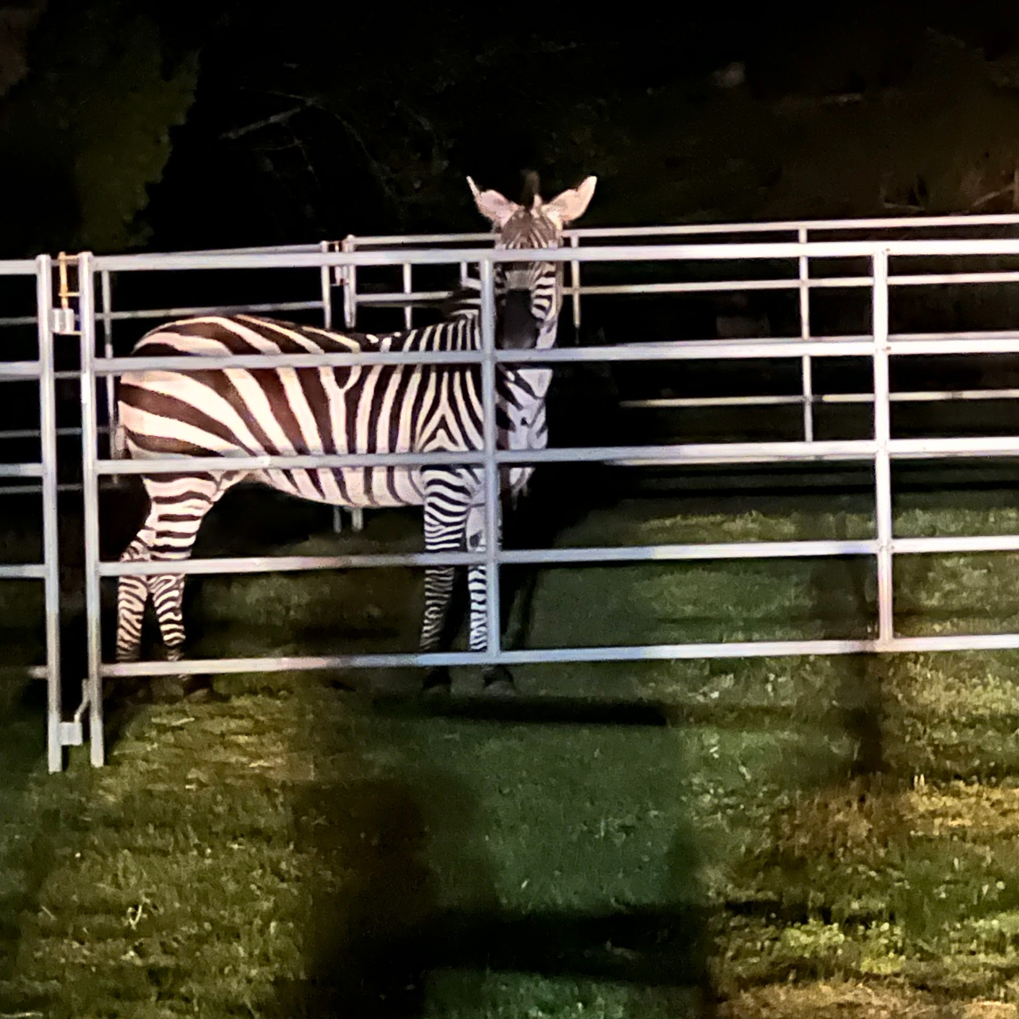 Three of the zebras were quickly corralled, but the mare, Shug, made a run for it. Search efforts were quickly put into motion and multiple sightings of the mare were observed on trail cams in the days that followed.