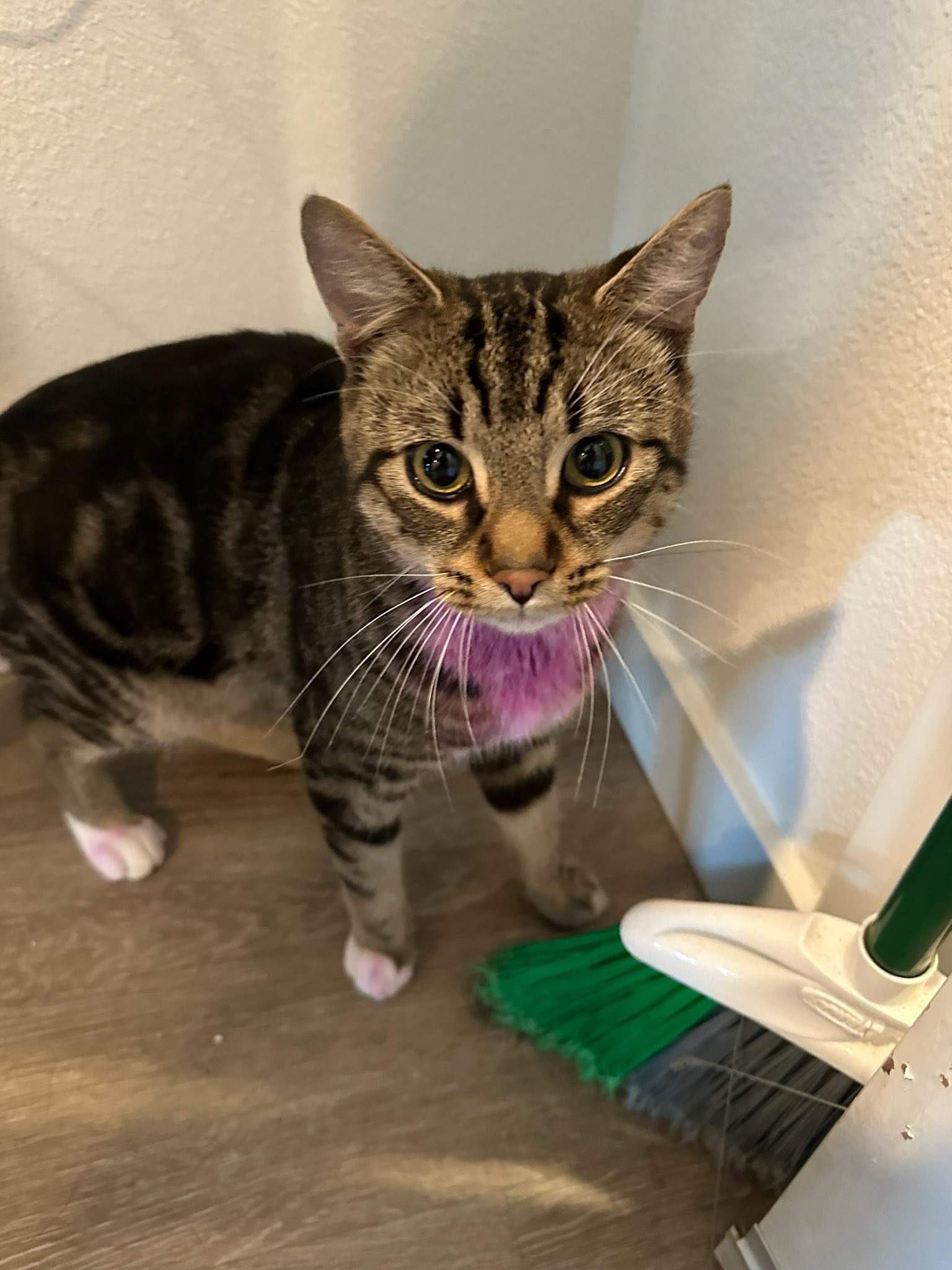 Yesterday while detectives from the DV Unit were at an apartment complex for an unrelated call for service, the manager informed them about a woman who was in the building visiting another tenant who was seen in the lobby strangling a cat. Detectives were able to locate the woman, and the cat, whose name is Apollo.